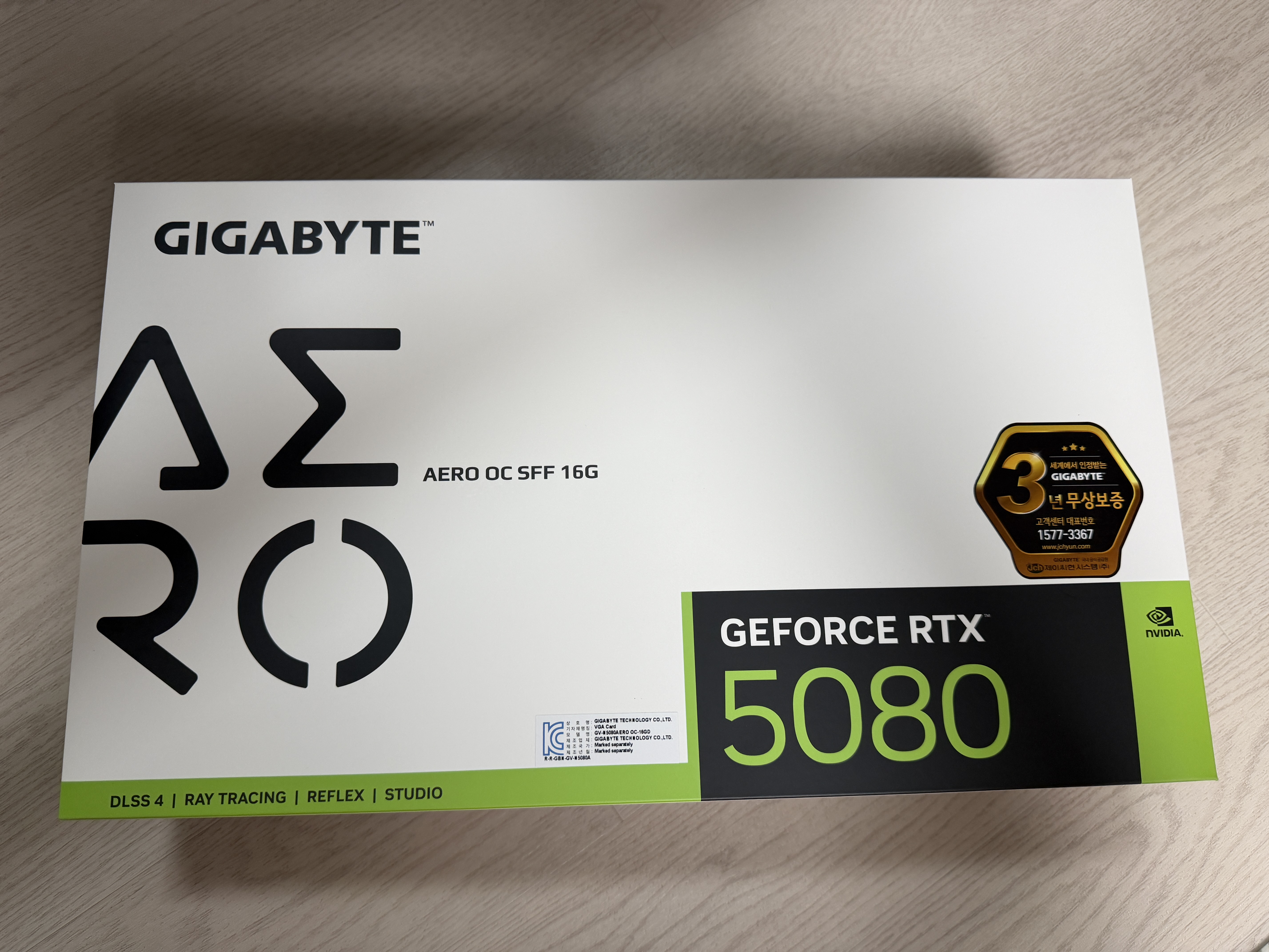 그래서 이번엔 고르고 골라서 결국 기가바이트 지포스 RTX 5080 AERO SFF OC 16GB 제품을 구입해서 장착하게 되었습니다.